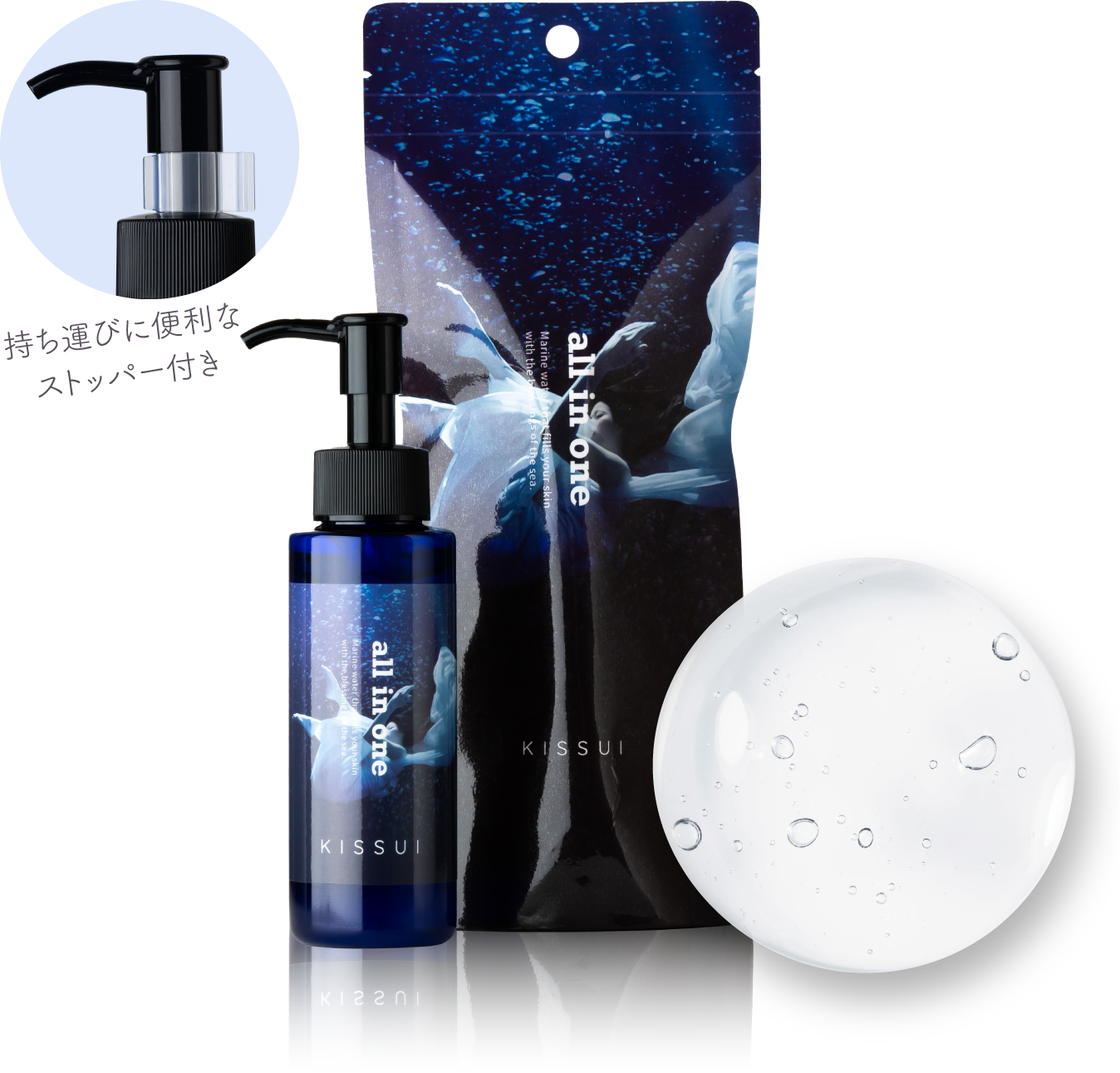 水を限りなく抑えた、世界遺産北海道知床の海洋深層水の「脱塩海水」と「コラーゲン」をベースに、11種類の美容成分をナノカプセルに閉じ込めた、贅沢なオールイワンゲル。