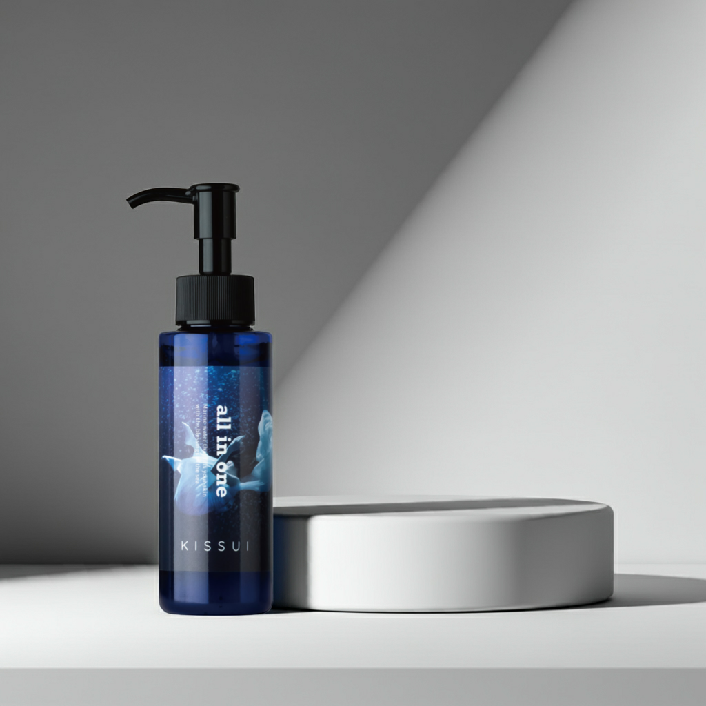 「小さな入り江に湧き出る”天然の海洋深層水プール”」のようなオールインワン。一つで水分・栄養・保護のすべてを満たしてくれる。波も深海のミネラルも岩盤の守りもコンパクトにそろった「オールインワンの海」のようなもの。忙しいときやお手軽ケアに。